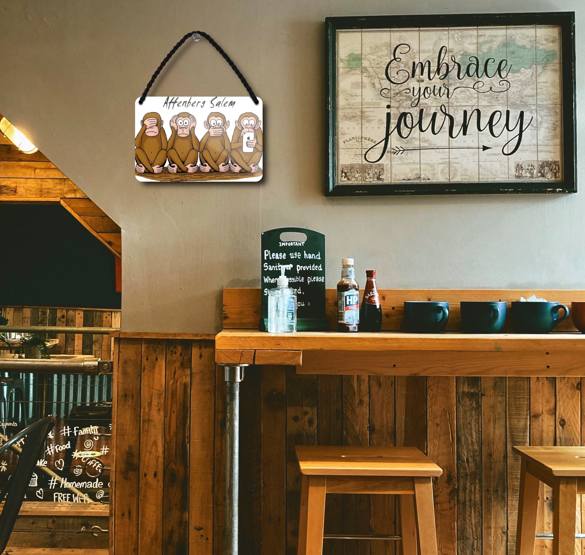Das Blechschild ''Affenberg Salem'' ist aus einem qualitativ hochwertigen Blech mit abgerundeten und umgeschlagenen Kanten. Ideal für Liebhaber und Fans von ''ironischem und sarkastischem Humor'' und definitiv ein Hingucker für jedermanns Auge.