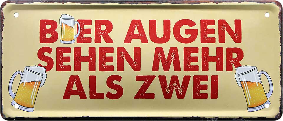 Blechschild ''Bier Augen sehen mehr als zwei'' 28x12cm