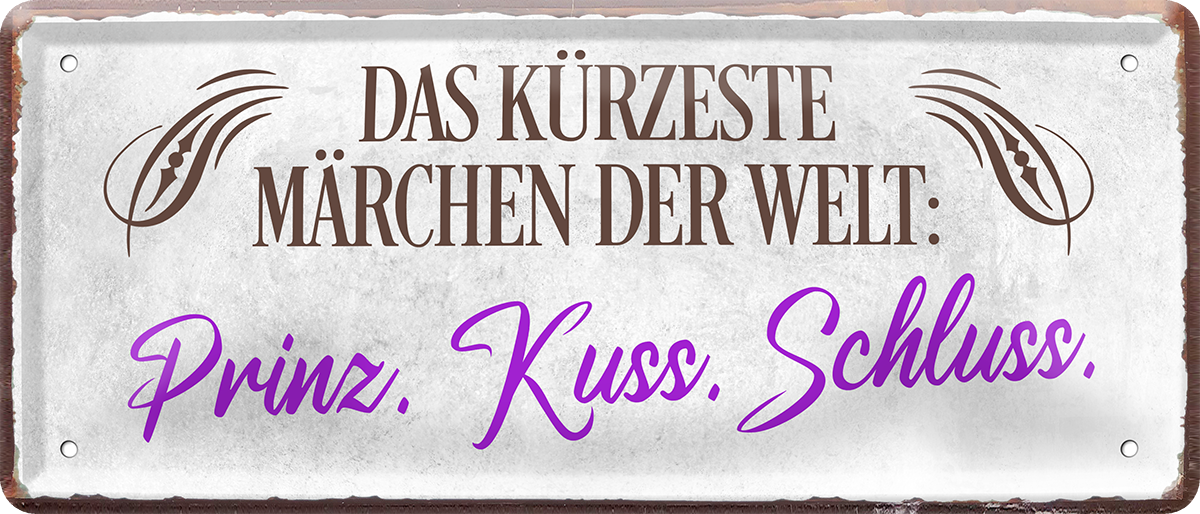 Blechschild ''Das kürzeste Märchen der Welt. Kuss'' 28x12cm