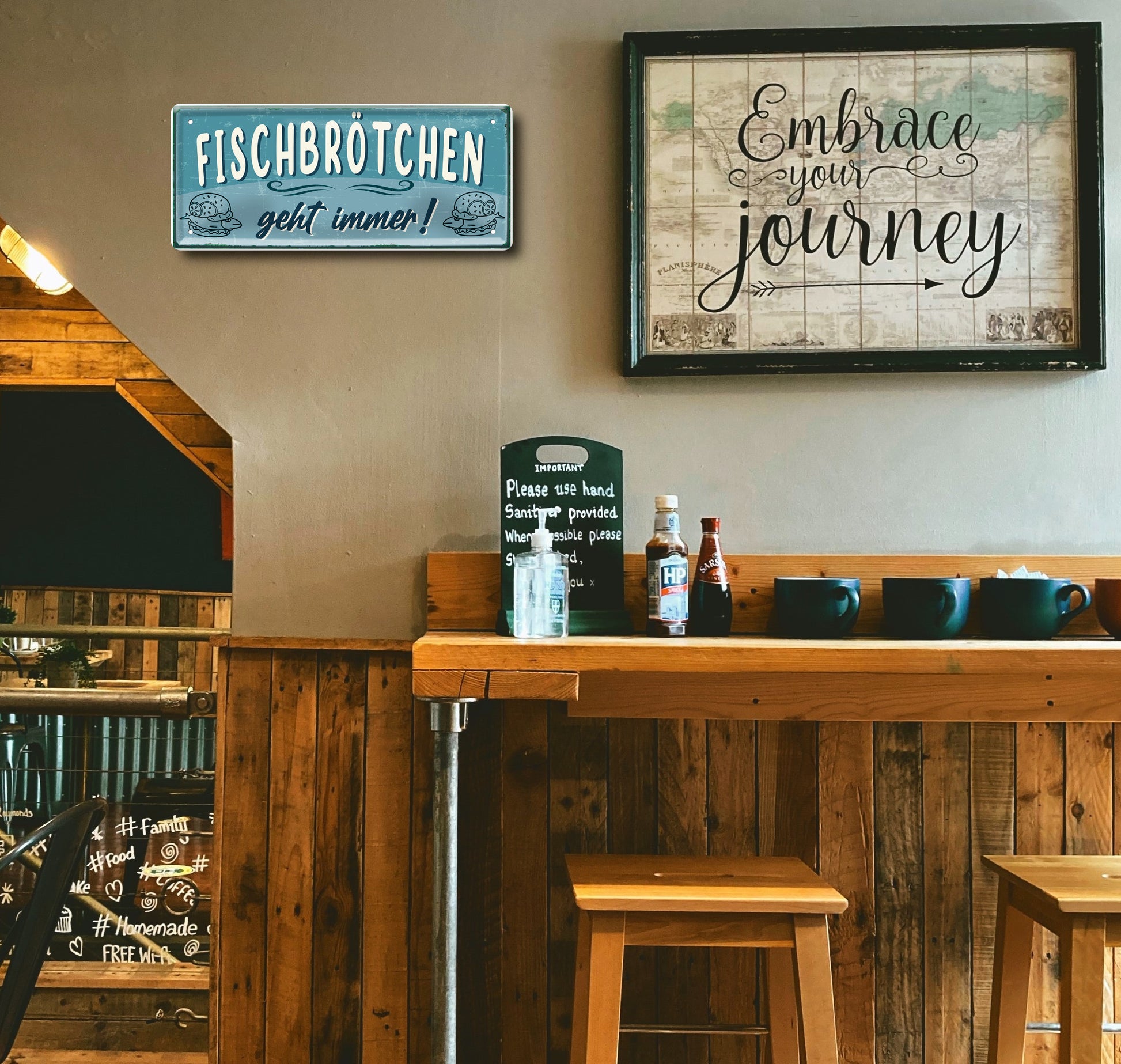 Das Blechschild ''Fischbrötchen geht immer!'' ist aus einem qualitativ hochwertigen Blech mit abgerundeten und umgeschlagenen Kanten. Ideal für Liebhaber und Fans von "genüsslichem Essen und Getränken" und definitiv ein Hingucker für jedermanns Auge.