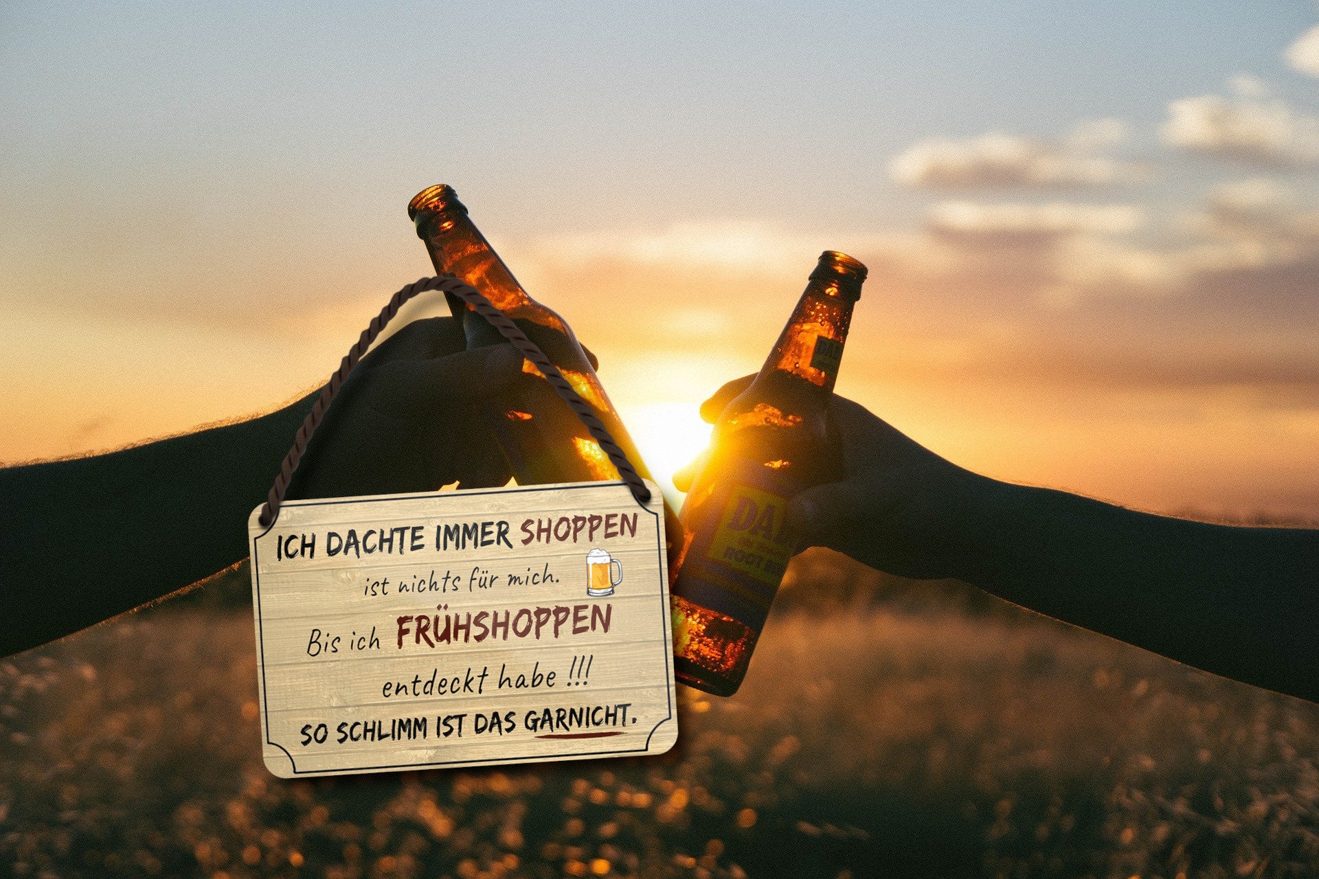 Blechschild ''Ich dachte immer Shoppen... Frühshoppen'' 18x12cm
