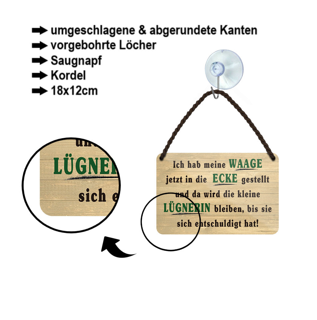 Blechschild ''Ich habe meine Waage in die Ecke gestellt Lügnerin'' 18x12cm