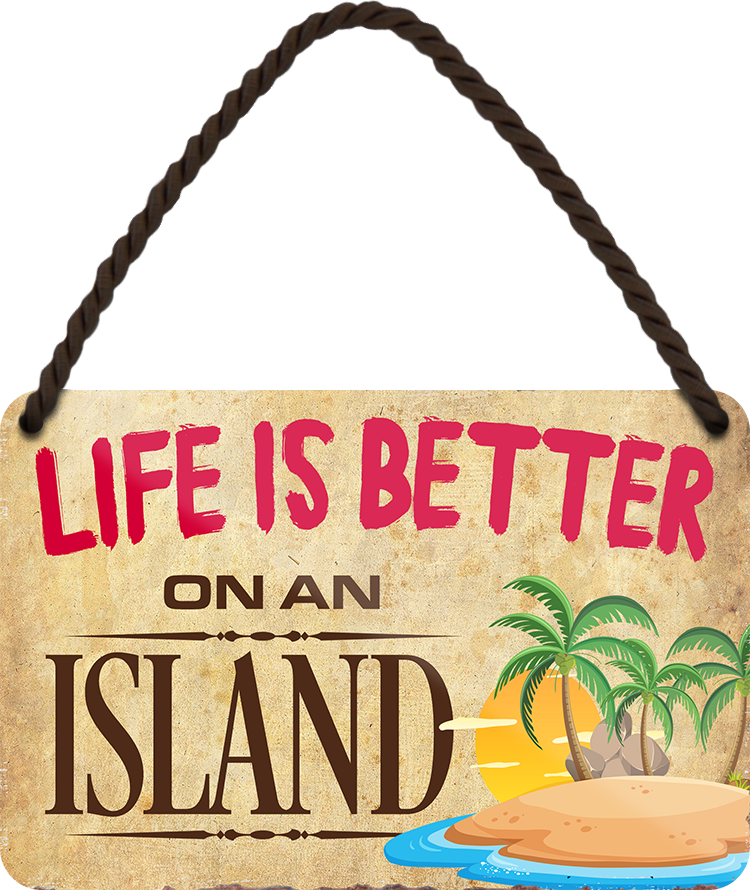 Das Blechschild ''Life is better Island'' ist aus einem qualitativ hochwertigen Blech mit abgerundeten und umgeschlagenen Kanten. Ideal für Liebhaber und Fans von ''frischer Meeresluft und Stränden'' und definitiv ein Hingucker für jedermanns Auge.