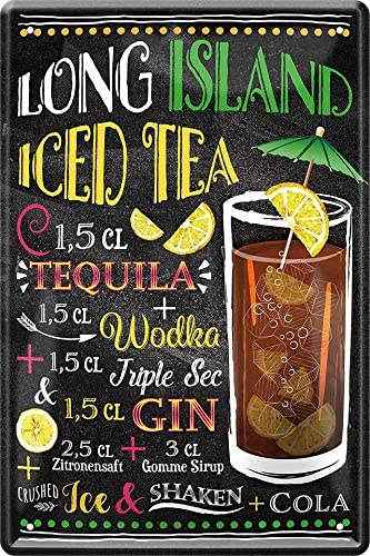 Das Blechschild ''Long Island Iced Tea'' ist aus einem qualitativ hochwertigen Blech mit abgerundeten und umgeschlagenen Kanten. Ideal für Liebhaber und Fans von "alkoholischen Getränken" und definitiv ein Hingucker für jedermanns Auge.