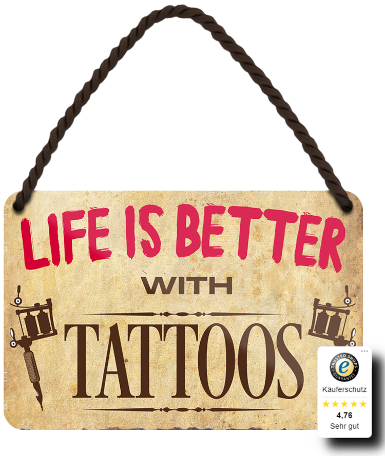 Die Blechschilder unserer Reihe ''Life is better..'' sind aus einem qualitativ hochwertigen Blech mit abgerundeten und umgeschlagenen Kanten. Ideal für Liebhaber und Fans von "Lieblingsspeisen, Hobbys und mehr" und definitiv ein Hingucker für jedermanns Auge.