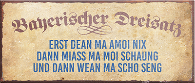 Der Super-Magnet ''Bayerischer Dreisatz'' ist aus einem langlebigen Metall mit qualitativ hochwertiger Oberfläche. Ideal für Liebhaber und Fans von "Dialekt und Kultur" und definitiv ein Hingucker für jedermanns Auge.