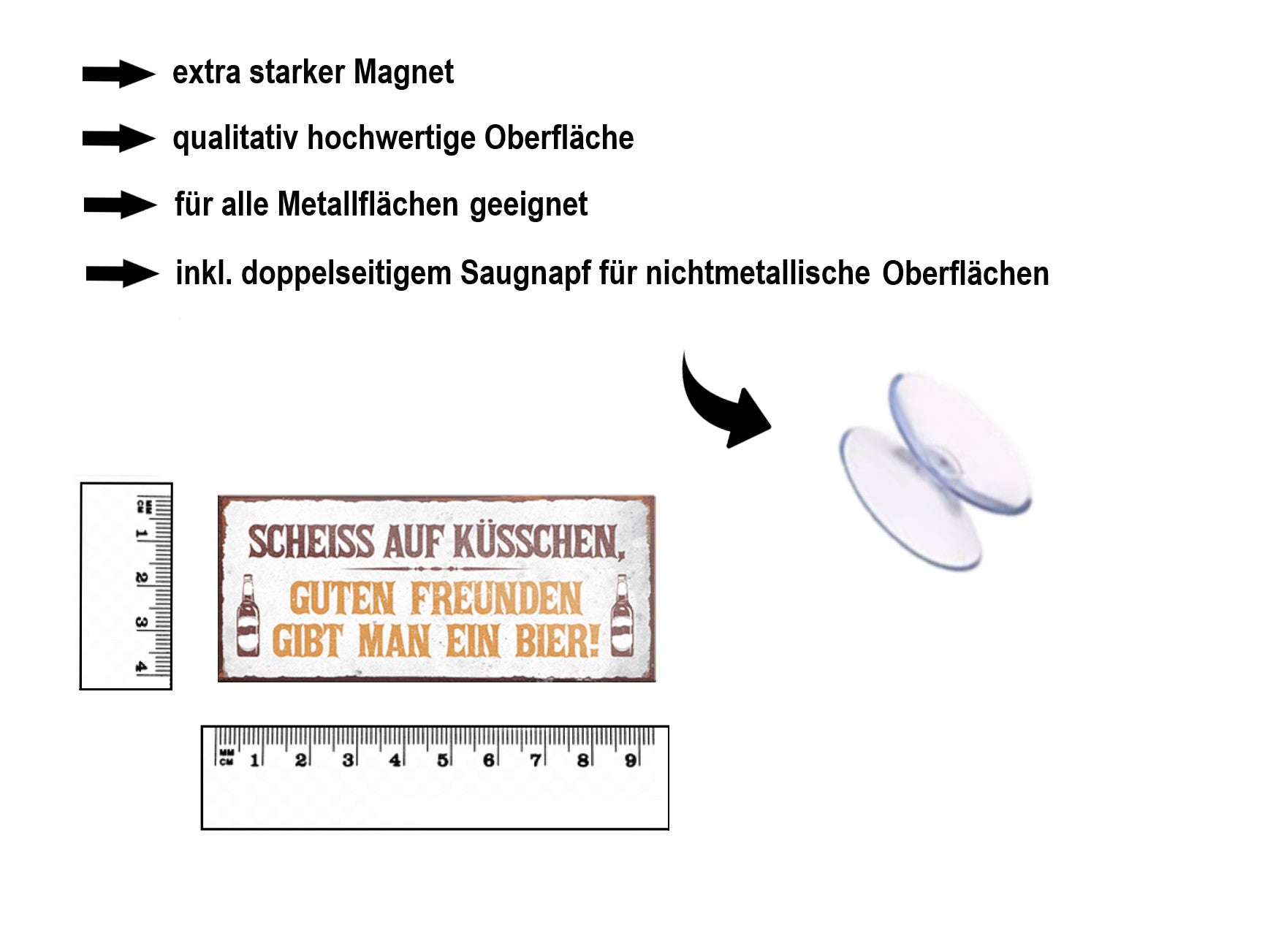Der Super-Magnet ''Scheiss auf Küsschen Bier'' ist aus einem langlebigen Metall mit qualitativ hochwertiger Oberfläche. Ideal für Liebhaber und Fans von "alkoholischen Getränken" und definitiv ein Hingucker für jedermanns Auge.
