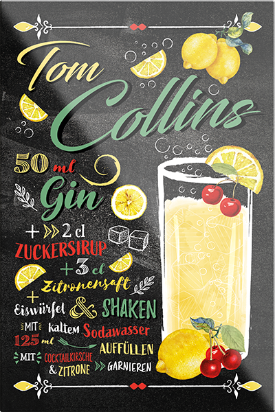 Der Super-Magnet ''Tom Collins'' ist aus einem langlebigen Metall mit qualitativ hochwertiger Oberfläche. Ideal für Liebhaber und Fans von "alkoholischen Getränken" und definitiv ein Hingucker für jedermanns Auge.