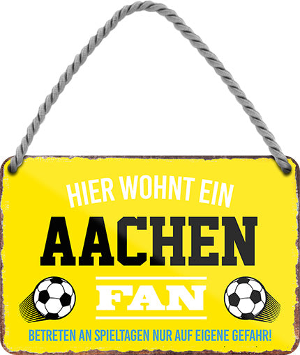 Das Blechschild ''Aachen Fan'' ist aus einem qualitativ hochwertigen Blech mit abgerundeten und umgeschlagenen Kanten. Ideal für Liebhaber und Fans von "Fußball und Vereinen" und definitiv ein Hingucker für jedermanns Auge.