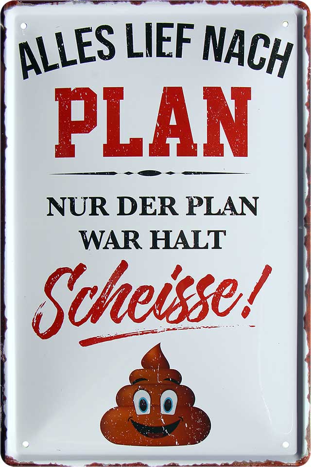 Blechschild ''Alles lief nach Plan. Plan war scheisse (Grau)'' 20x30cm