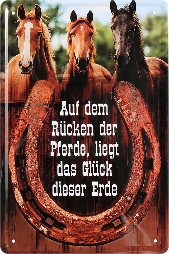 Blechschild ''Auf dem Rücken der Pferde, liegt Glück der Erde'' 20x30cm