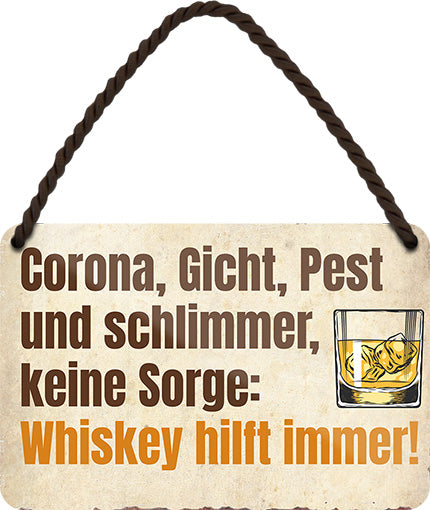 Blechschild ''Corona, Gicht, Pest und Schlimmer.. Whiskey'' 18x12cm