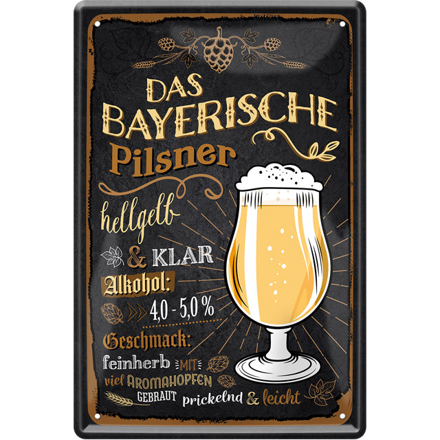 Blechschild ''Das bayerische Pilsner (dickes Glas)'' 20x30cm