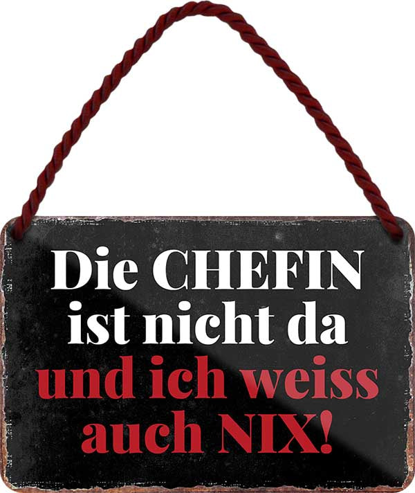 Blechschild ''Die Chefin ist nicht da und ich weiss auch Nix'' 18x12cm