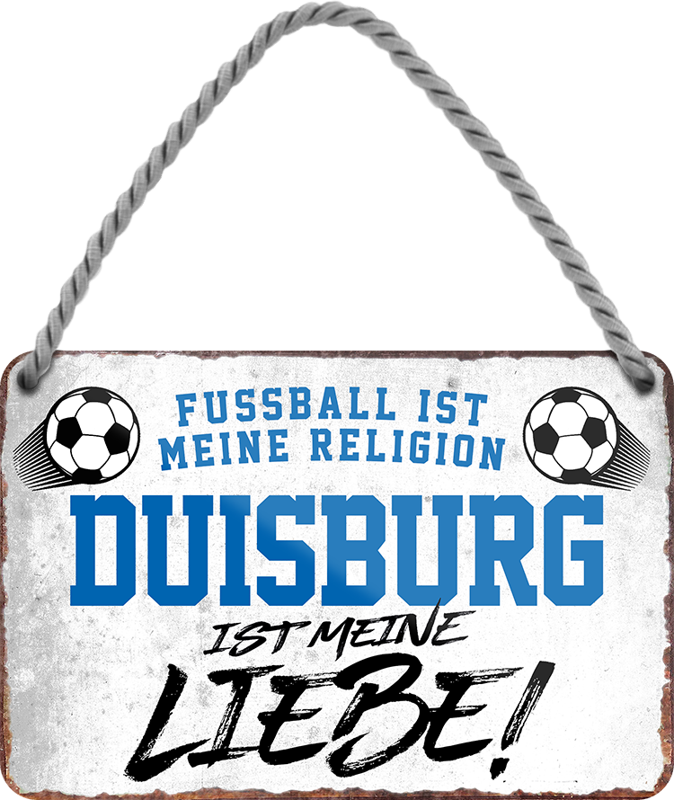 Das Blechschild ''Duisburg ist meine Liebe!'' ist aus einem qualitativ hochwertigen Blech mit abgerundeten und umgeschlagenen Kanten. Ideal für Liebhaber und Fans von "Fußball und Vereinen" und definitiv ein Hingucker für jedermanns Auge.
