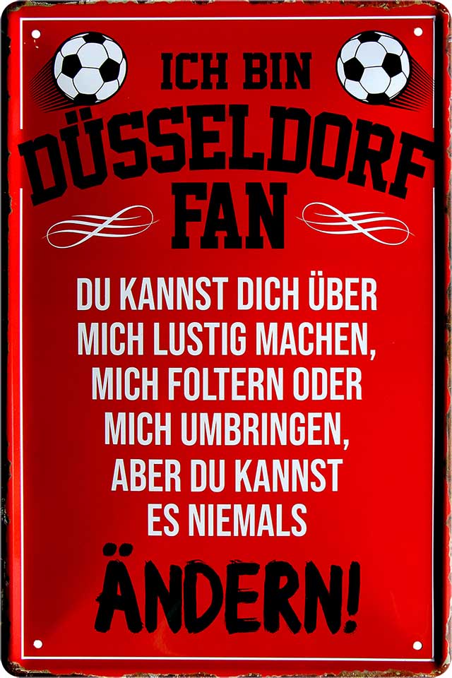 Das Blechschild ''Düsseldorf Fan ´19'' ist aus einem qualitativ hochwertigen Blech mit abgerundeten und umgeschlagenen Kanten. Ideal für Liebhaber und Fans von "Fußball und Vereinen" und definitiv ein Hingucker für jedermanns Auge.
