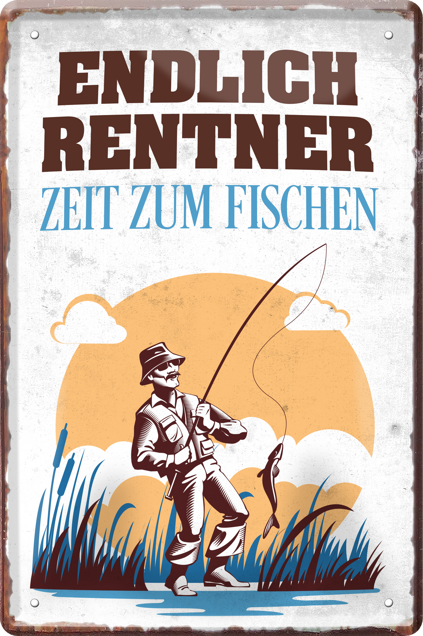 Das Blechschild ''Endlich Rentner. Zeit zum Angeln'' ist aus einem qualitativ hochwertigen Blech mit abgerundeten und umgeschlagenen Kanten. Ideal für Liebhaber und Fans von ''Angeln und Fischen'' und definitiv ein Hingucker für jedermanns Auge.