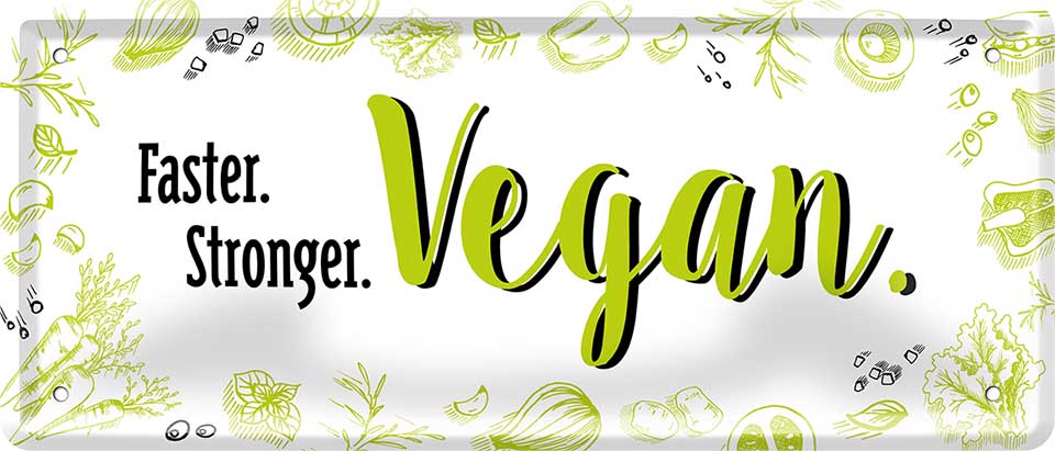 Blechschild ''Faster, Stronger, Vegan'' 28x12cm