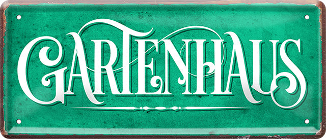 Blechschild ''Gartenhaus (grüner Hintergrund)'' 28x12cm
