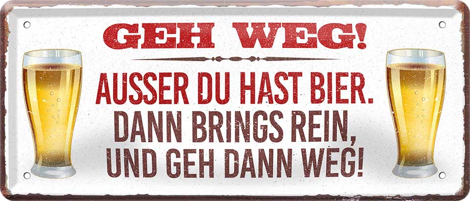 Blechschild ''Geh weg. Ausser du hast Bier'' 28x12cm