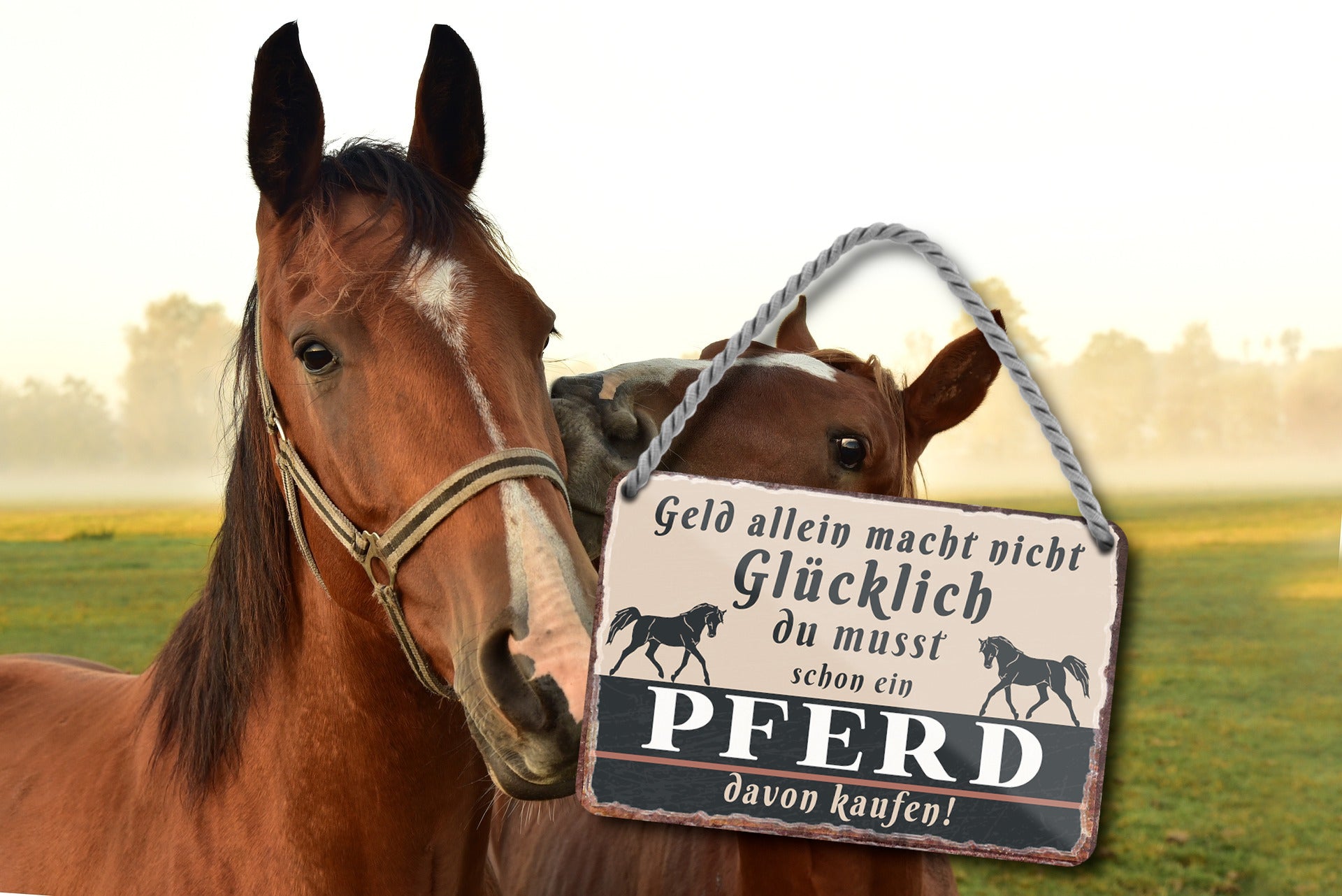 Blechschild ''Geld allein macht nicht glücklich Pferd'' 18x12cm