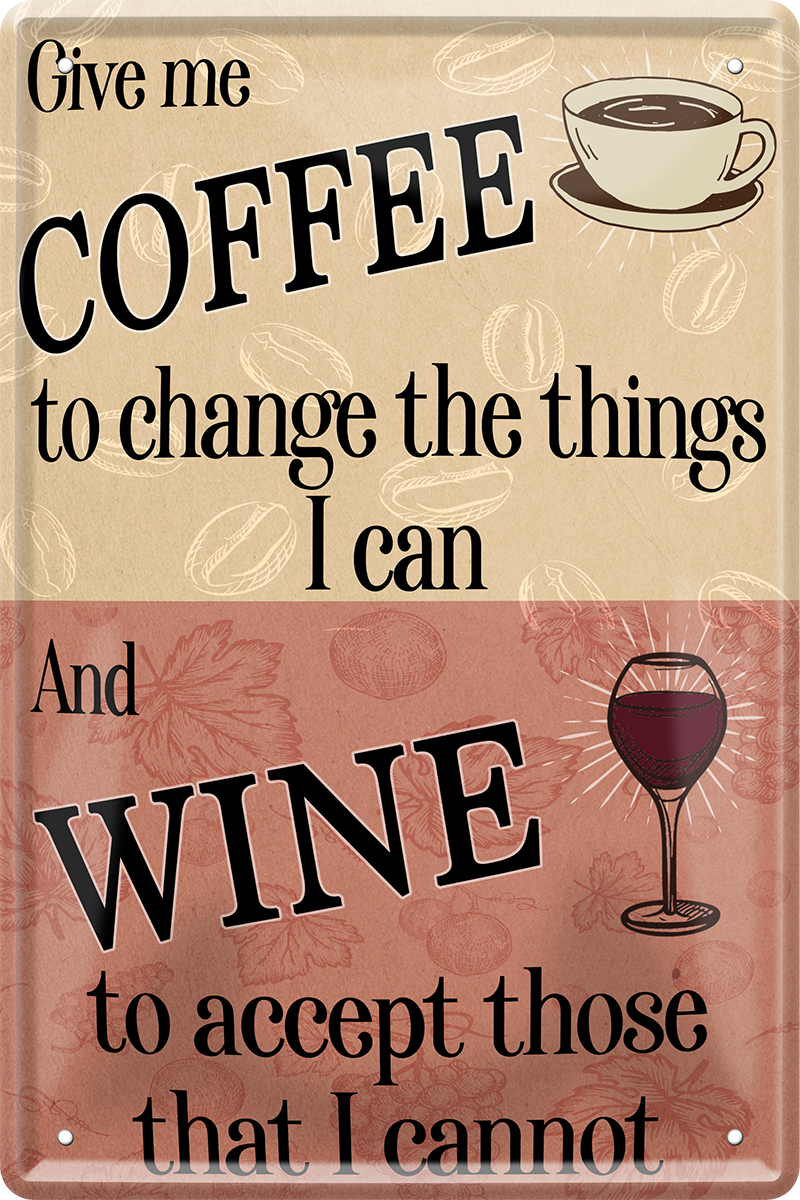 Blechschild ''Give me Coffee and Wine'' 20x30cm