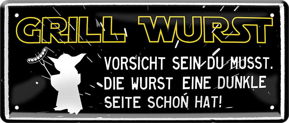 Blechschild ''Grill Wurst Vorsicht sein du musst Wurst eine dunkle Seite hat'' 28x12cm