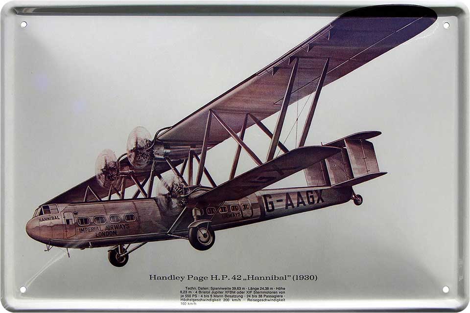 Blechschild ''Handley Page H.P. 42'' 20x30cm