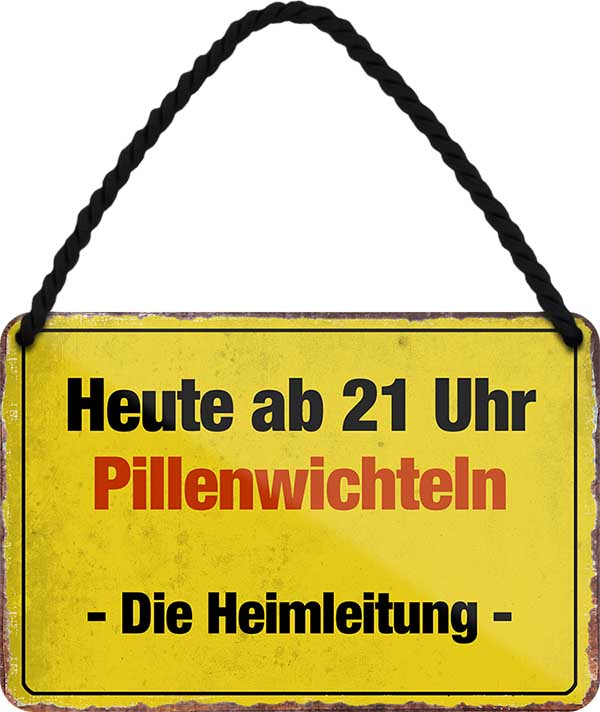 Blechschild ''Heute ab 21 Uhr Pillenwichteln die Heimleitung'' 18x12cm