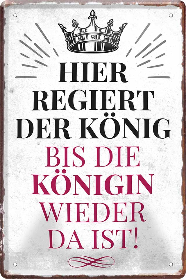 Blechschild ''Hier regiert der König, bis die Königin..'' 20x30cm
