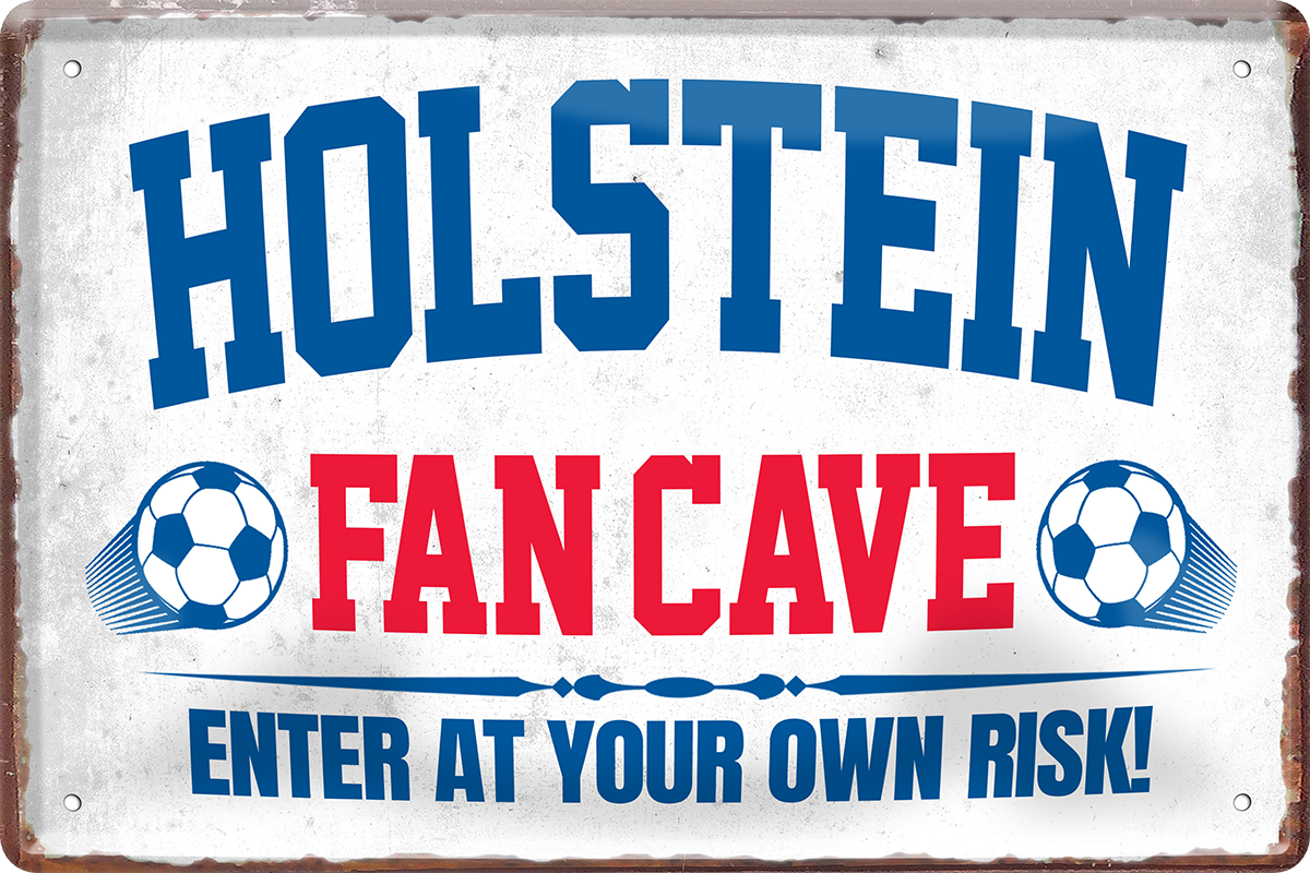 Das Blechschild ''Holstein Fan Cave'' ist aus einem qualitativ hochwertigen Blech mit abgerundeten und umgeschlagenen Kanten. Ideal für Liebhaber und Fans von "Fußball und Vereinen" und definitiv ein Hingucker für jedermanns Auge.