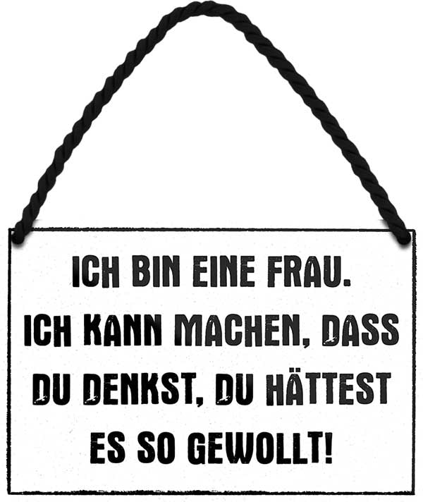 Blechschild ''Ich bin eine Frau, ich kann machen, dass du denkst, du hättest es so gewollt'' 18x12cm