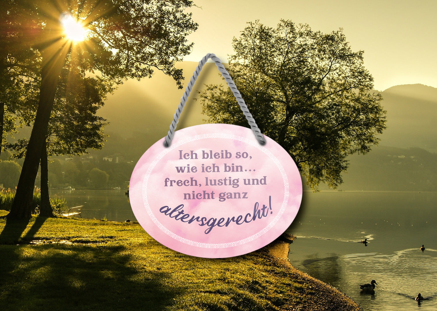 Blechschild ''Ich bleibe so, wie ich bin. Frech, lustig, altersgerecht'' 18x14cm