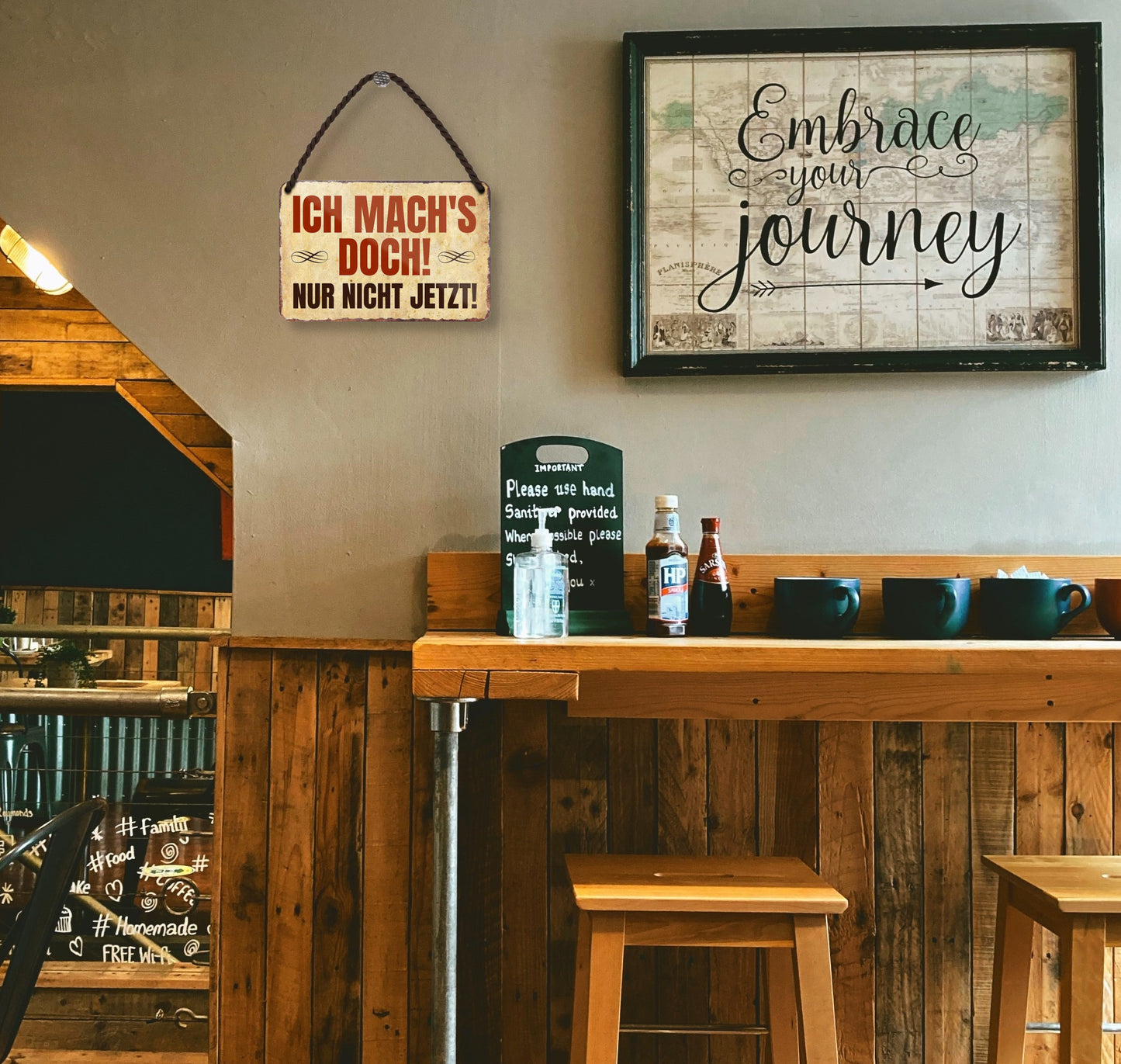 Blechschilder: Für den Innenbereich. Vermeiden Sie Feuchtigkeit und starke Sonneneinstrahlung.