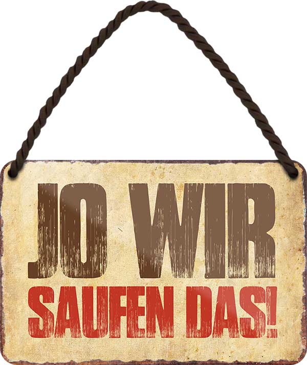 Das Blechschild ''Jo wir saufen das'' ist aus einem qualitativ hochwertigen Blech mit abgerundeten und umgeschlagenen Kanten. Ideal für Liebhaber und Fans von „alkoholischen Getränken“ und definitiv ein Hingucker für jedermanns Auge.