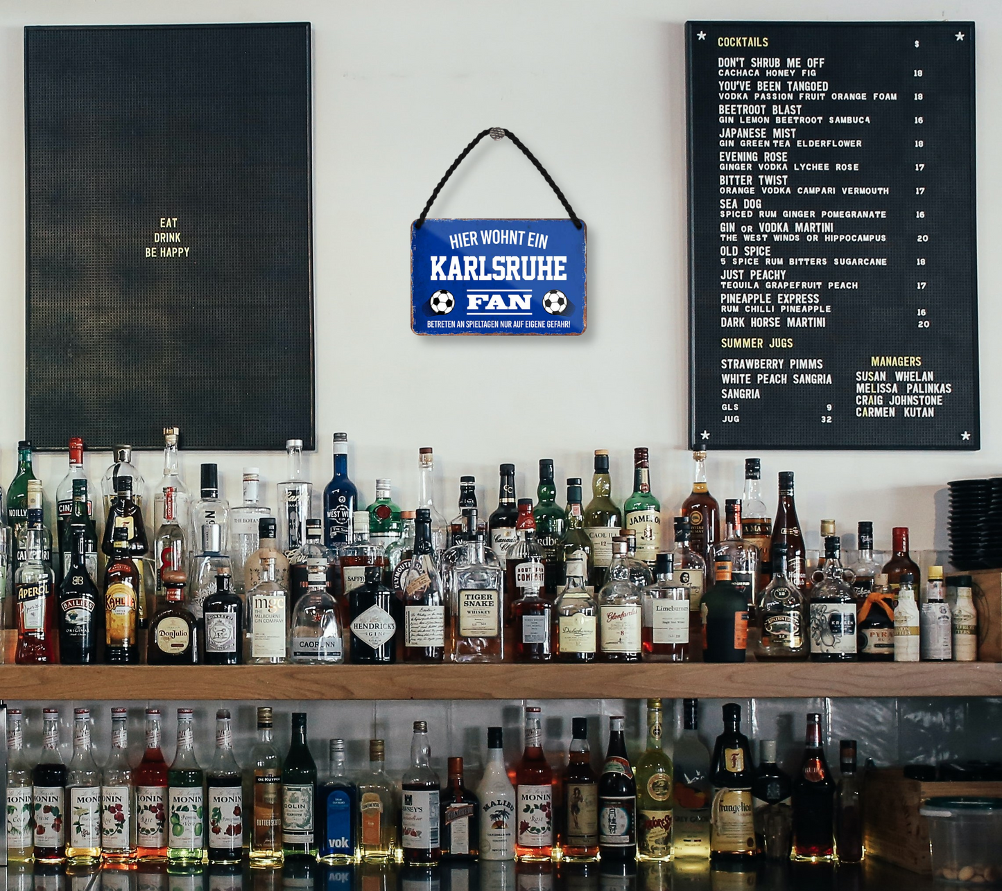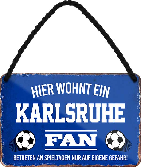 Das Blechschild ''Karlsruhe Fan'' ist aus einem qualitativ hochwertigen Blech mit abgerundeten und umgeschlagenen Kanten. Ideal für Liebhaber und Fans von "Fußball und Vereinen" und definitiv ein Hingucker für jedermanns Auge.