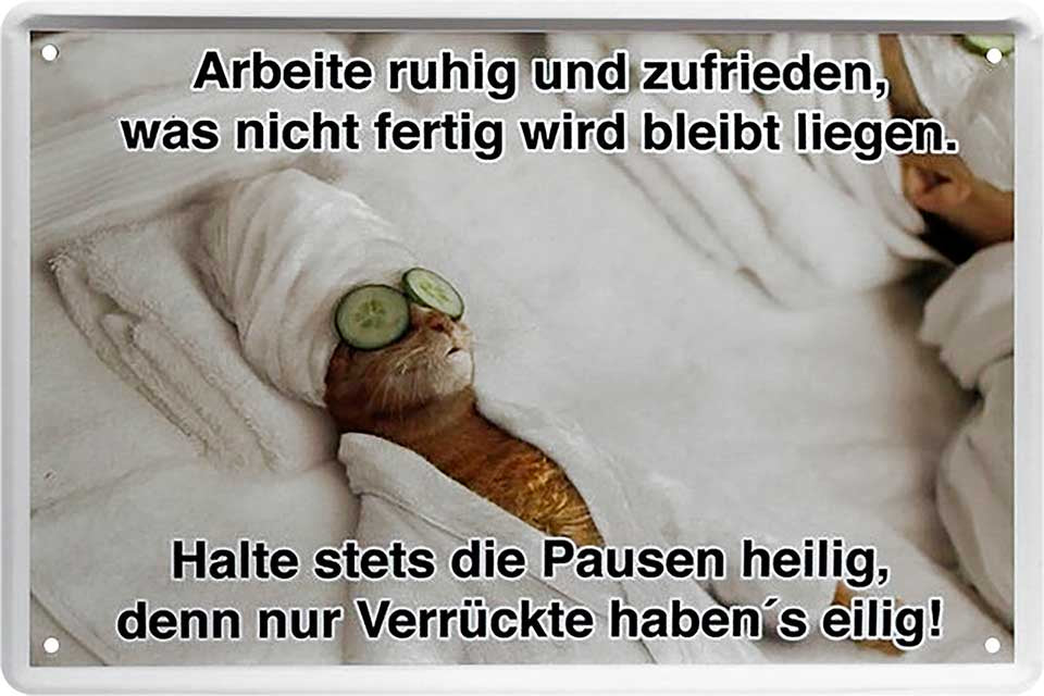 Blechschild ''Katze Arbeite ruhig zufrieden, nicht fertig wird bleibt liegen'' 20x30cm