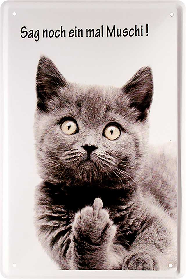 Blechschild ''Katze Sag noch einmal Muschi'' 20x30cm