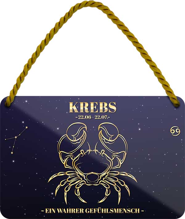 Das Blechschild ''Krebs (schwarz gold)'' ist aus einem qualitativ hochwertigen Blech mit abgerundeten und umgeschlagenen Kanten. Ideal für Liebhaber und Fans von ''Astro und Sternzeichen'' und definitiv ein Hingucker für jedermanns Auge.
