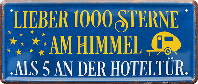 Blechschild ''Lieber 1000 Sterne am Himmel (Camper)'' 28x12cm