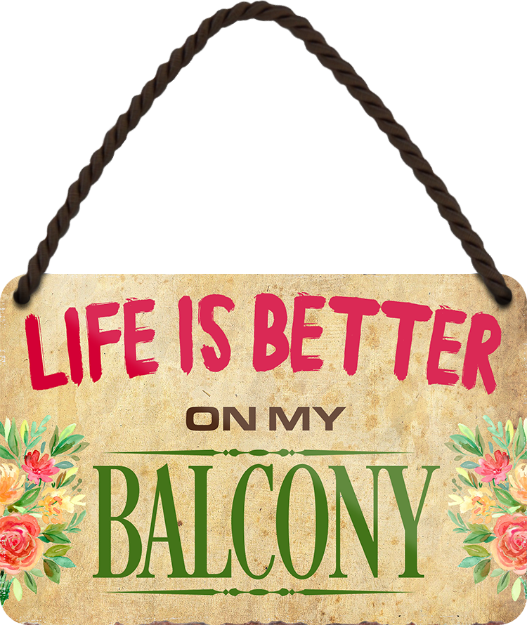 Blechschild ''Life ist better Balcony'' 18x12cm