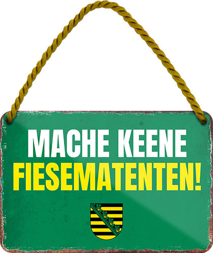Das Blechschild ''MACH KEENE FIESEMATENTEN'' ist aus einem qualitativ hochwertigen Blech mit abgerundeten und umgeschlagenen Kanten. Ideal für Liebhaber und Fans von "Dialekt und Kultur" und definitiv ein Hingucker für jedermanns Auge.
