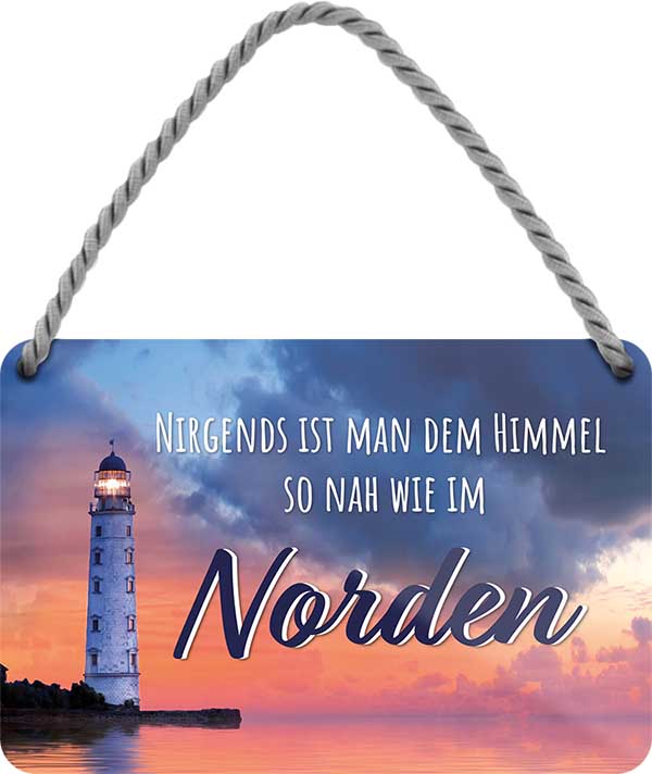 Blechschild ''Nirgends ist man den Himmel so nah wie im Norden (Leuchtturm Wasser Wolken)'' 18x12cm
