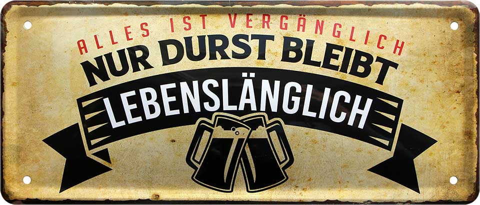 Blechschild ''Nur Durst bleibt lebenslänglich'' 28x12cm