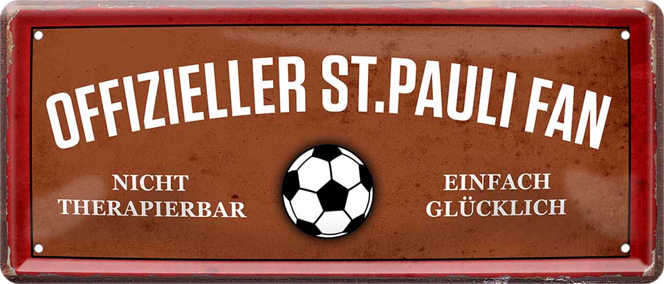 Das Blechschild ''Offizieller ST. Pauli Fan'' ist aus einem qualitativ hochwertigen Blech mit abgerundeten und umgeschlagenen Kanten. Ideal für Liebhaber und Fans von "Fußball und Vereinen" und definitiv ein Hingucker für jedermanns Auge.