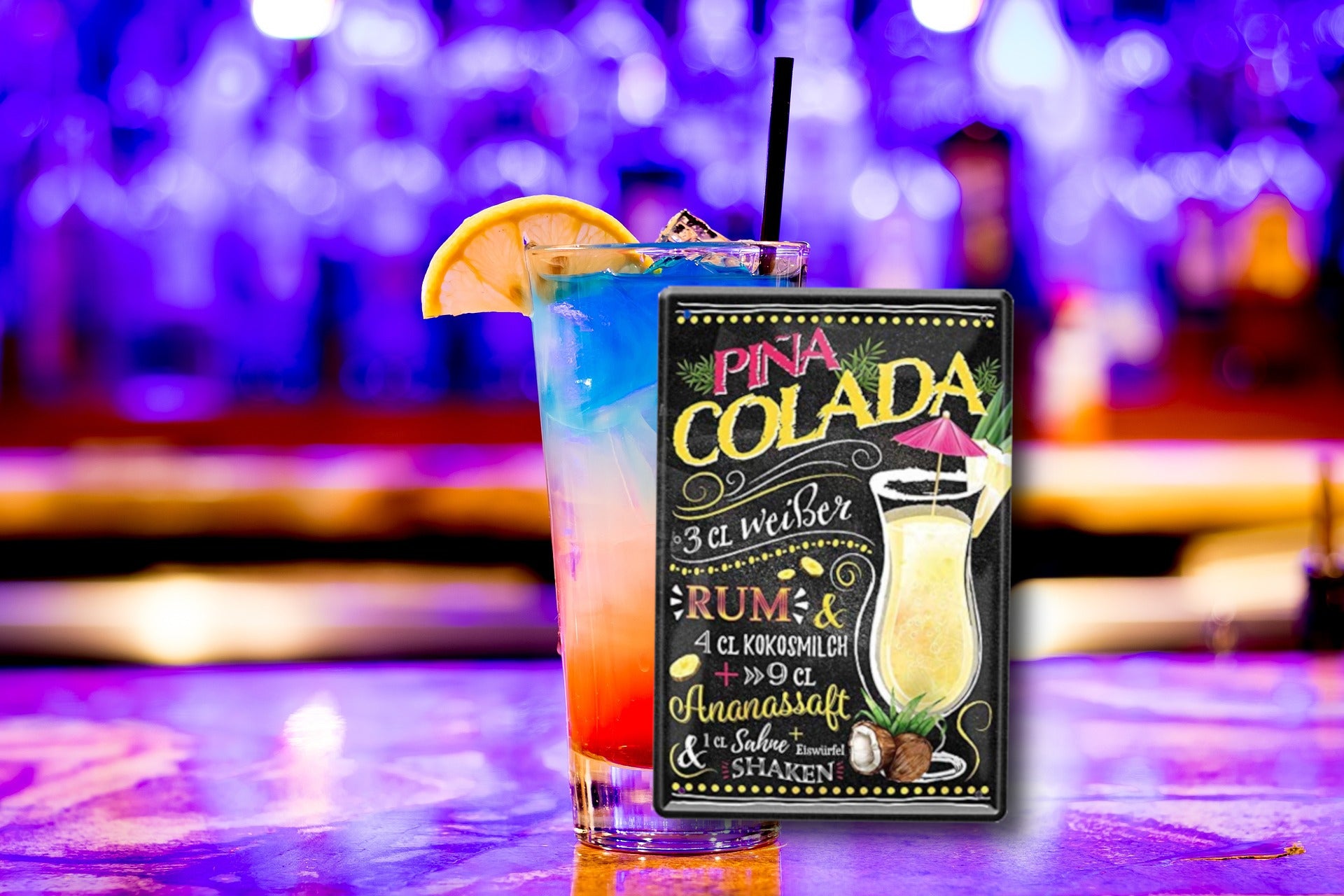 Das Blechschild ''Pina Colada'' ist aus einem qualitativ hochwertigen Blech mit abgerundeten und umgeschlagenen Kanten. Ideal für Liebhaber und Fans von "alkoholischen Getränken" und definitiv ein Hingucker für jedermanns Auge.