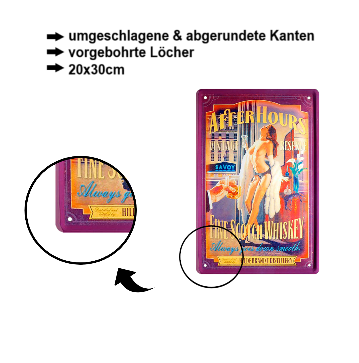 Das Blechschild ''Pinup After Hours'' ist aus einem qualitativ hochwertigen Blech mit abgerundeten und umgeschlagenen Kanten. Ideal für Liebhaber und Fans von ''anzüglichem Humor und sexy Pinups" und definitiv ein Hingucker für jedermanns Auge.