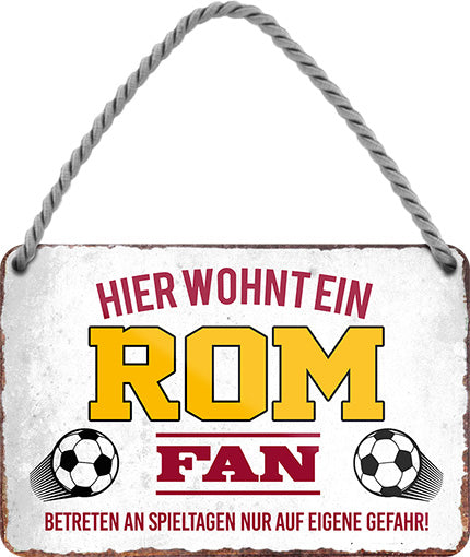 Das Blechschild ''Rom Fan'' ist aus einem qualitativ hochwertigen Blech mit abgerundeten und umgeschlagenen Kanten. Ideal für Liebhaber und Fans von "Fußball und Vereinen" und definitiv ein Hingucker für jedermanns Auge.