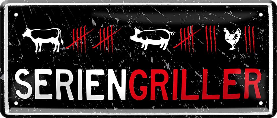 Das Blechschild ''Seriengriller'' ist aus einem qualitativ hochwertigen Blech mit abgerundeten und umgeschlagenen Kanten. Ideal für Liebhaber und Fans von "genüsslichem Essen und Getränken" und definitiv ein Hingucker für jedermanns Auge.