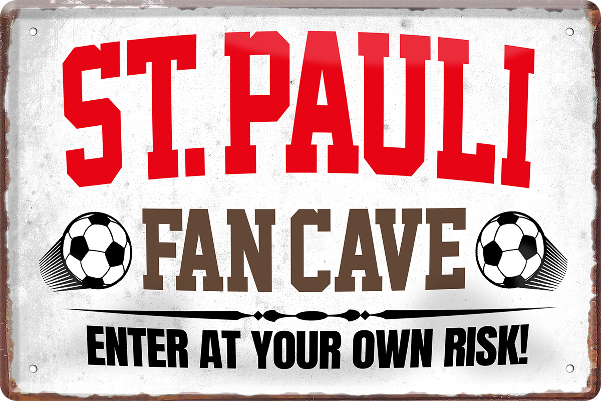 Das Blechschild ''St. Pauli Fan Cave'' ist aus einem qualitativ hochwertigen Blech mit abgerundeten und umgeschlagenen Kanten. Ideal für Liebhaber und Fans von "Fußball und Vereinen" und definitiv ein Hingucker für jedermanns Auge.